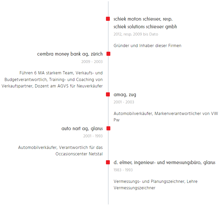 seit 2009 bin ich nun selbständig unterwegs, durfte somit vielen firmen/menschen meine erfahrung und mein know-how vermitteln. heute ist mir bewusst, dass sich ein mensch nur selbst motiv-ieren, ich jedoch mit meiner art und weise dies in einem menschen auslösen kann. und nur wenn ich weiss, wie mein gegenüber wirklich denkt, kann ich etwas mit ihm zusammen erreichen. und es gibt sooo viele unterschiedliche menschen da draussen, somit gibt es auch kein immergleiches kommunikationsrezept. und doch nannte ich viele jahre meine seminare „backen nach rezept“, denn ich habe ein rezept, wie du mit verschiedensten menschen zu einem gemeinsamen nenner findest. du kannst und musst jedoch nicht mit jedem menschen deine lebenszeit verbringen. seit 2012 habe ich zudem mein grösstes hobby zum beruf gemacht, und habe meine eigene autohandelsfirma gegründet (schiek motors schiesser), in der ich einerseits meine leidenschaft ausleben kann, und dort auch meine eventhalle schiek's drin ist, oder besser gesagt war... denn irgendwie hatte ich es auch da wieder extrem viel mit den "98%-menschen" zu tun. daher ist der autohandel aktuell wieder eines meiner hobbys... seit februar 2025 engagiere ich mich mit absoluter hingabe als hofnarr, und kümmere mich um die restlichen 2% der menschheit, um milliardäre und besitzlose, oder jene, welche JETZT wirklich etwas verändern wollen.